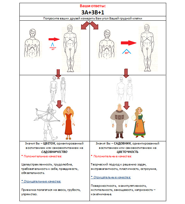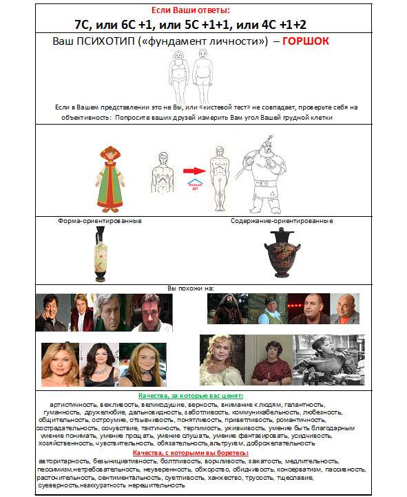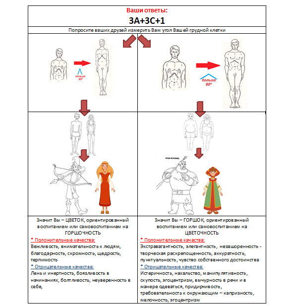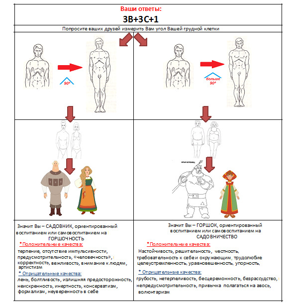 Единственным объективным показателем при определении психотипа является угол грудной клетки, который может быть только «прямым», «тупым» или «острым». «Четвертого» в данном случае не дано.