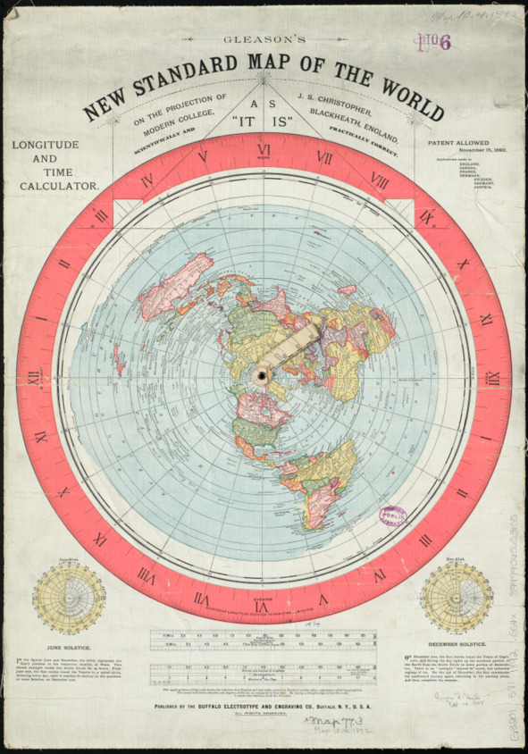 Кстати, такие карты существовали ещё в XIX веке. Вот одна из них. Карта называется NEW STANDART MAP OF THE WORLD, что в переводе с английского обозначает – новый стандарт карты мира. Дата, указанная на карте – 15 ноября 1892 год. Оригинал карты находится в Бостоне, США.