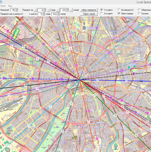 Что касается нашей темы. В программе есть «Local space», а также возможность построить геодезические астрологические и зенитные звёздные карты.