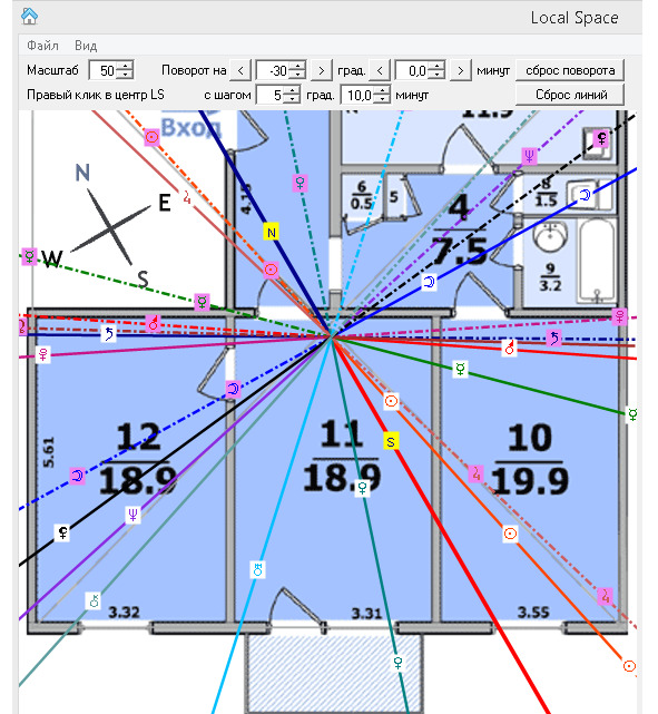 Локально-пространственный гороскоп (ЛПГ) можно использовать как астрологический «фен-шуй»: в комнате, доме, квартире, городе, стране, планете. Для этого ЛПГ необходимо сориентировать по сторонам Света, и произвести его проекцию на местность с учётом локальности (смены места пребывания, если таковая имеет место быть).