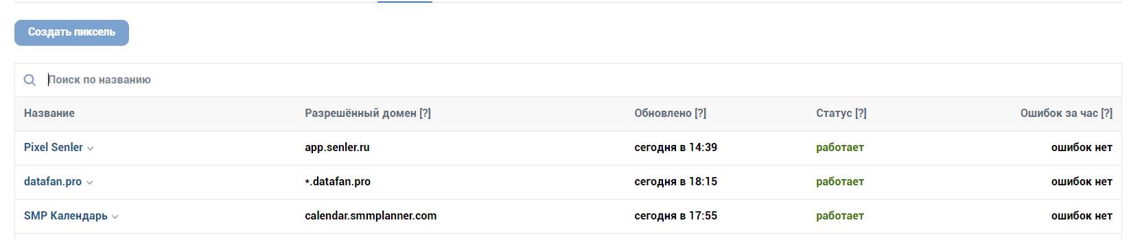 Вот так выглядит работающий пиксель ВК