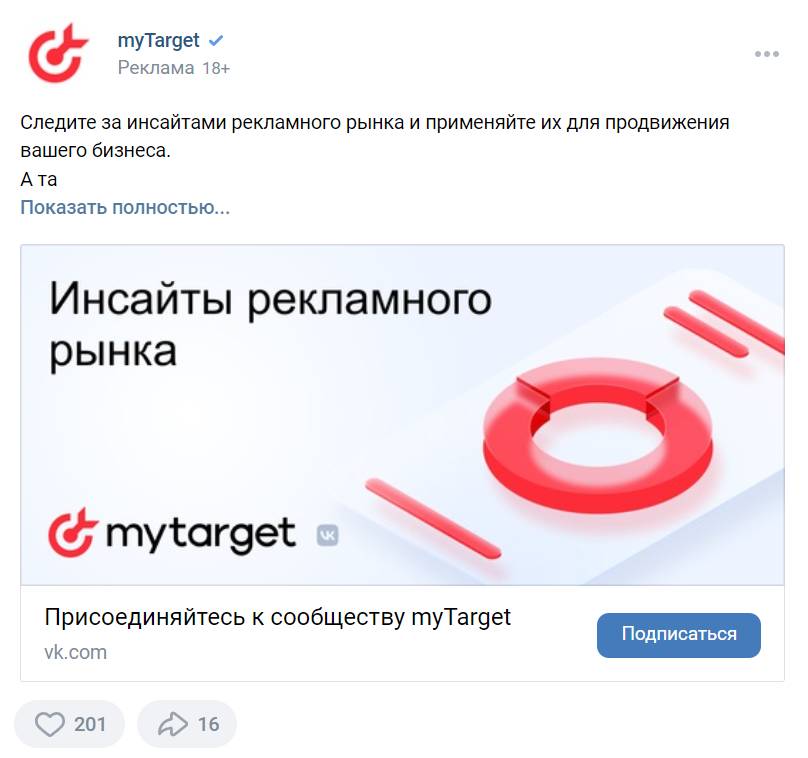 Принцип прост и понятен – пользователю показывается картина, близкая его текущей жизненной ситуации. Я, например, проживая в районе Бутово, регулярно вижу рекламу с изображением популярных мест своего района и непременным обращением к себе как жителю Бутовского района Москвы. Во ВКонтакте в подписках несколько SMM-сообществ, поэтому и реклама соответствующая.