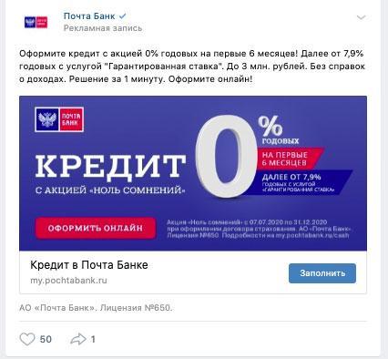 Таргетированная реклама Почта Банка