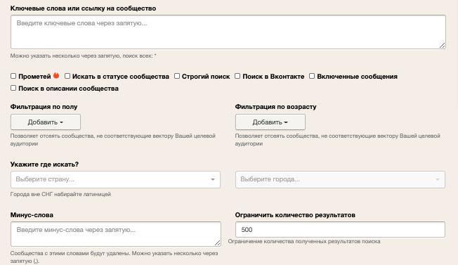 1. Поиск по геопозиции. И это не обязательно страны или города. Вы можете найти точные локации (например, торговых центров), в которых появляется ваша целевая аудитория. Можно в поиске и попросту забить хештег места. Например, в Инстаграме* можно будет увидеть топ публикаций по хештегу и найти по ним самых популярных пользователей соцсети. В Фейсбуке* нужно зайти в Поиск – Места. А во ВКонтакте найти популярные группы и паблики лидеров мнений с определенным местоположением можно не только в поиске, но и с помощью парсеров. Например, в Pepper.Ninja можно указать не только страну и город, но и пол и возраст подписчиков группы/паблика. Хотите найти самые популярные? Поставьте галочку рядом с пунктом «Прометей»: