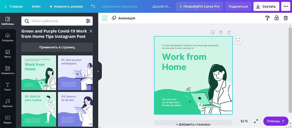 • создавать изображения нужного размера и формата для разных соцсетей;