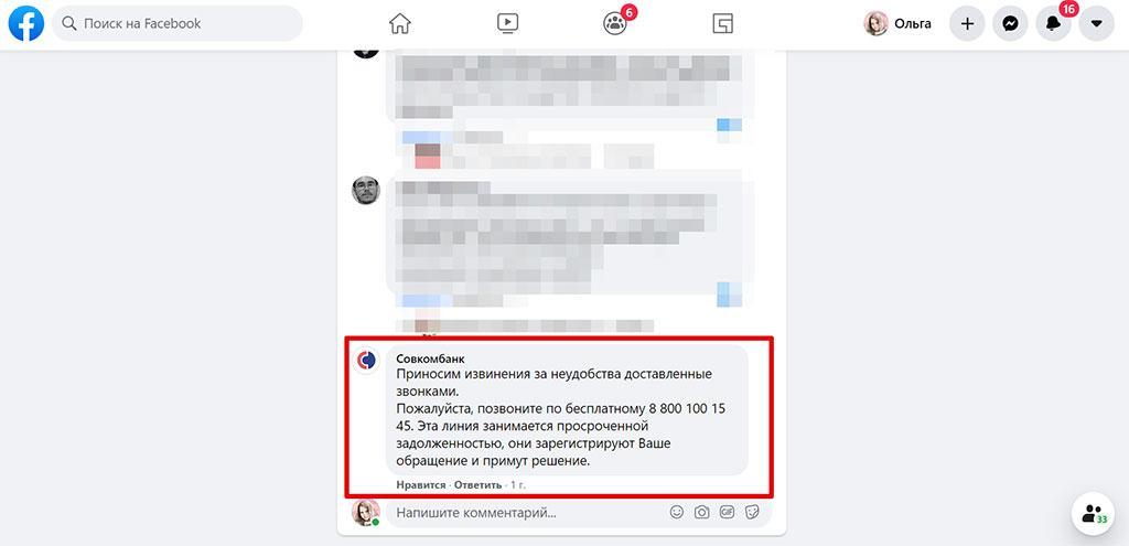 Очевидно, Совкомбанк мониторит упоминания, в том числе на личных страницах пользователей