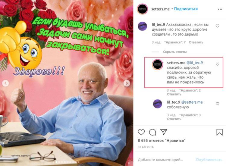 Например, в аккаунте самого агентства есть контент, который бесит каждого второго: