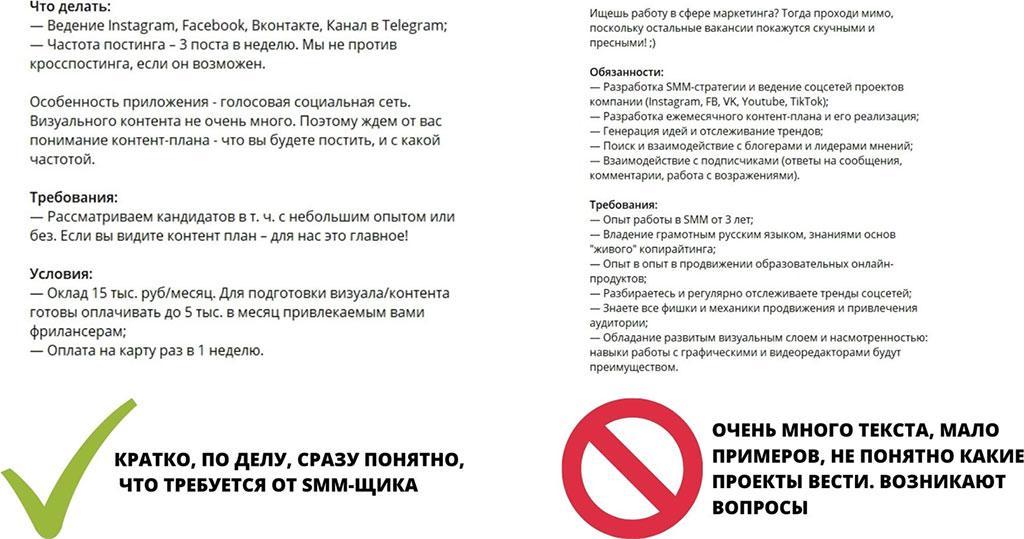 Конечно, хорошо написанная вакансия не гарантирует, что бизнес найдет идеального SMM-щика. Но подробно расписанное объявление точно привлечет внимание опытных специалистов, которые сразу смогут оценить, релевантен их опыт требованиям или нет.