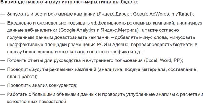 Задачи PPC-специалиста из реальной вакансии на hh.ru