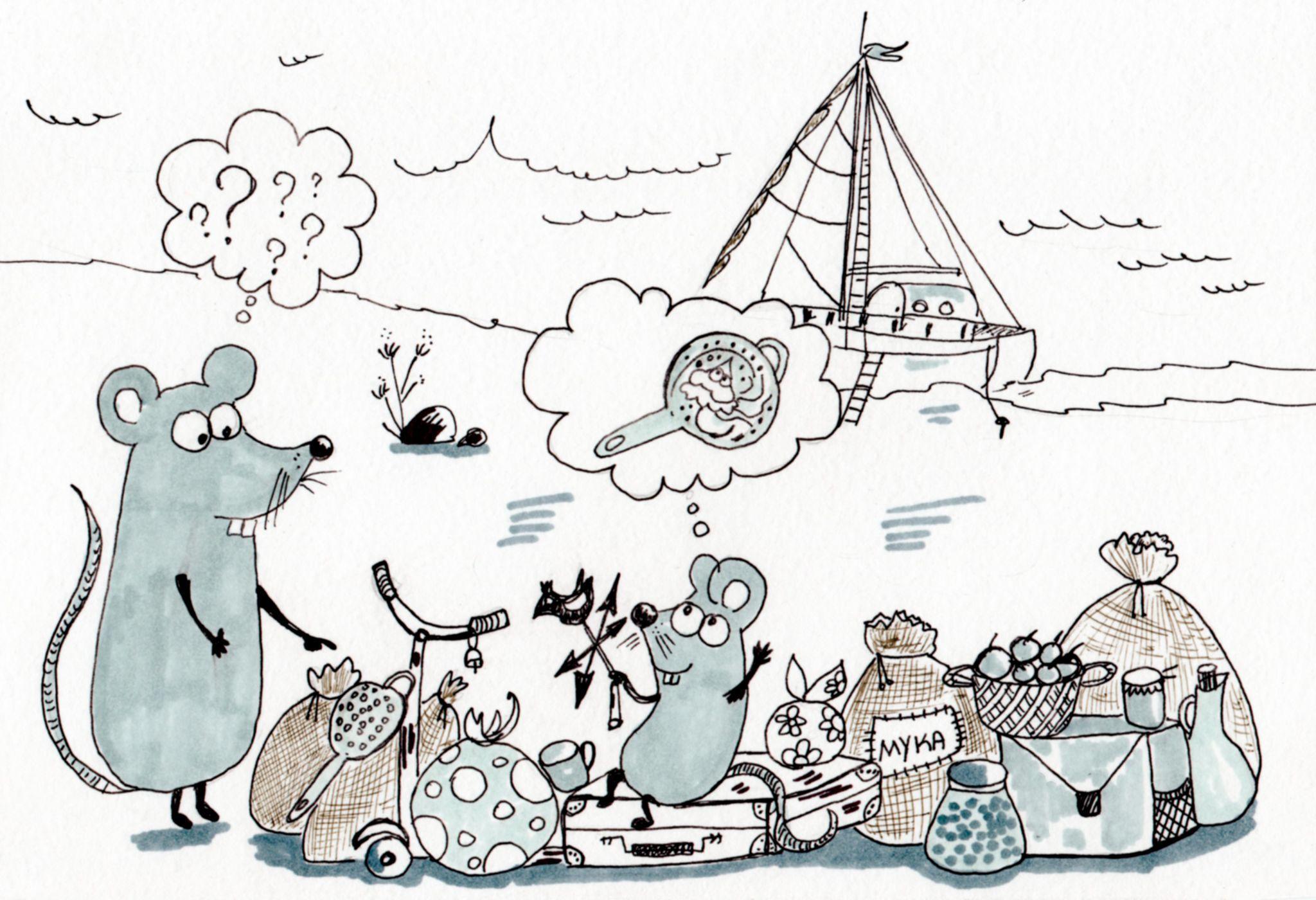 Макс и Микс взошли на корабль. Отсюда берег казался сплошь серым. Фуражки они вымазали в муке и теперь важно белели ими с корабля.