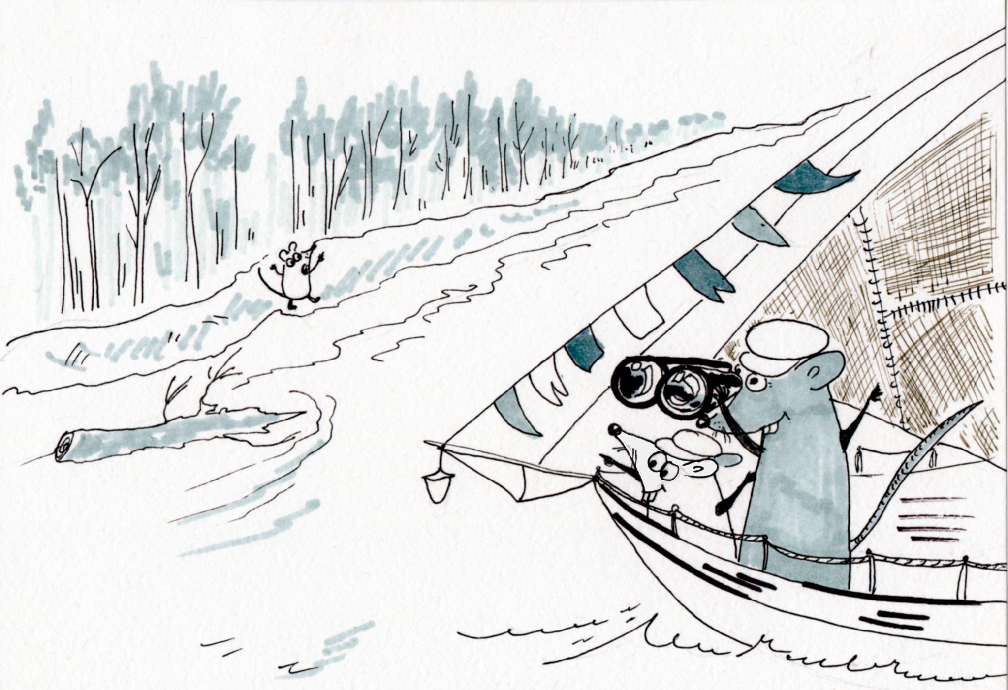 Сначала им, конечно, было не до смеха. Тряхнуло хорошенько и не сразу было понятно почему. Вскочив на ноги, братья побежали смотреть. И когда они поняли, что бревно врезалось в них и сняло корабль с мели – вот было радости!