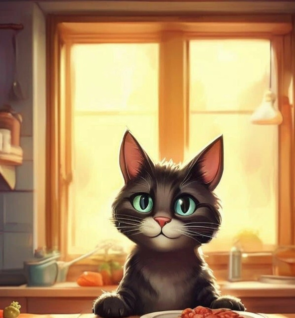 Единственный кто в доме, был заинтересован в столе, так это он. Котская натура требовала его обладания. Он прыгнул на соседний стул, а затем на подоконник, и стал ждать момента стащить сосиску со стола. Хозяйский сын Ванька никак не хотел уходить, сидит за столом со своим планшетом. И сам не ест и Тимошке не даёт осуществить свой план. Кот спрыгнул с подоконника, подошёл к Ваньки и потёрся об его ноги «Может так догадается». Хозяйский сын усмехнулся, увидев, как кот пытается подкрасться к сосиске.