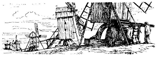Он отдыхал возле одной из многочисленных ветряных мельниц на холме. Вдруг появилось большое овечье стадо, а за ним два пастуха с собаками. Мальчик, сидевший в укромном местечке под мельничной лестницей, ничуть не испугался. Однако и овчары уселись на ту же самую лестницу старой мельницы, и мальчику оставалось лишь затаиться.
