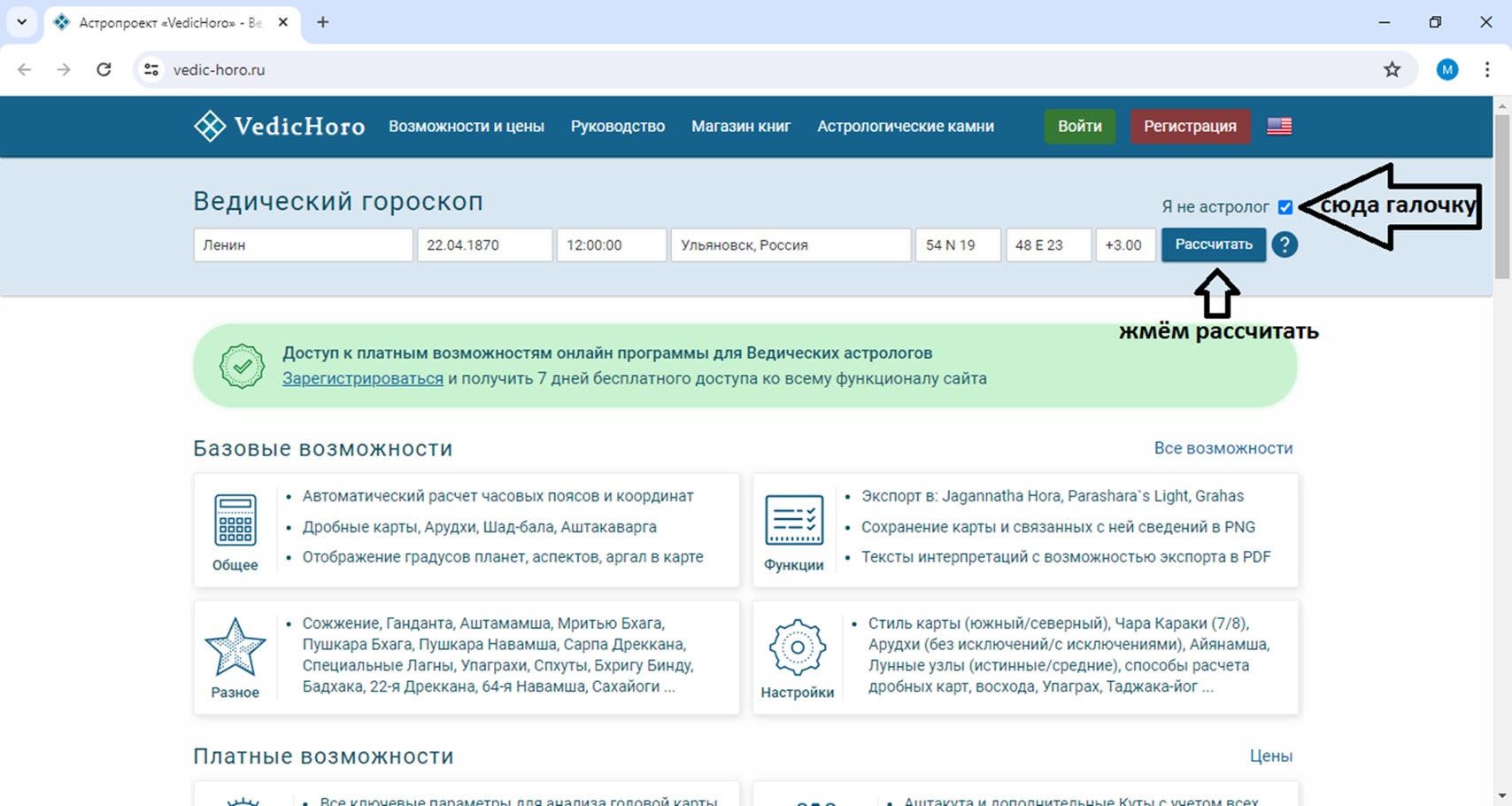Для этого достаточно пройти по ссылке: https://vedic-horo.ru/