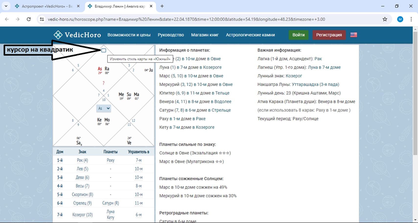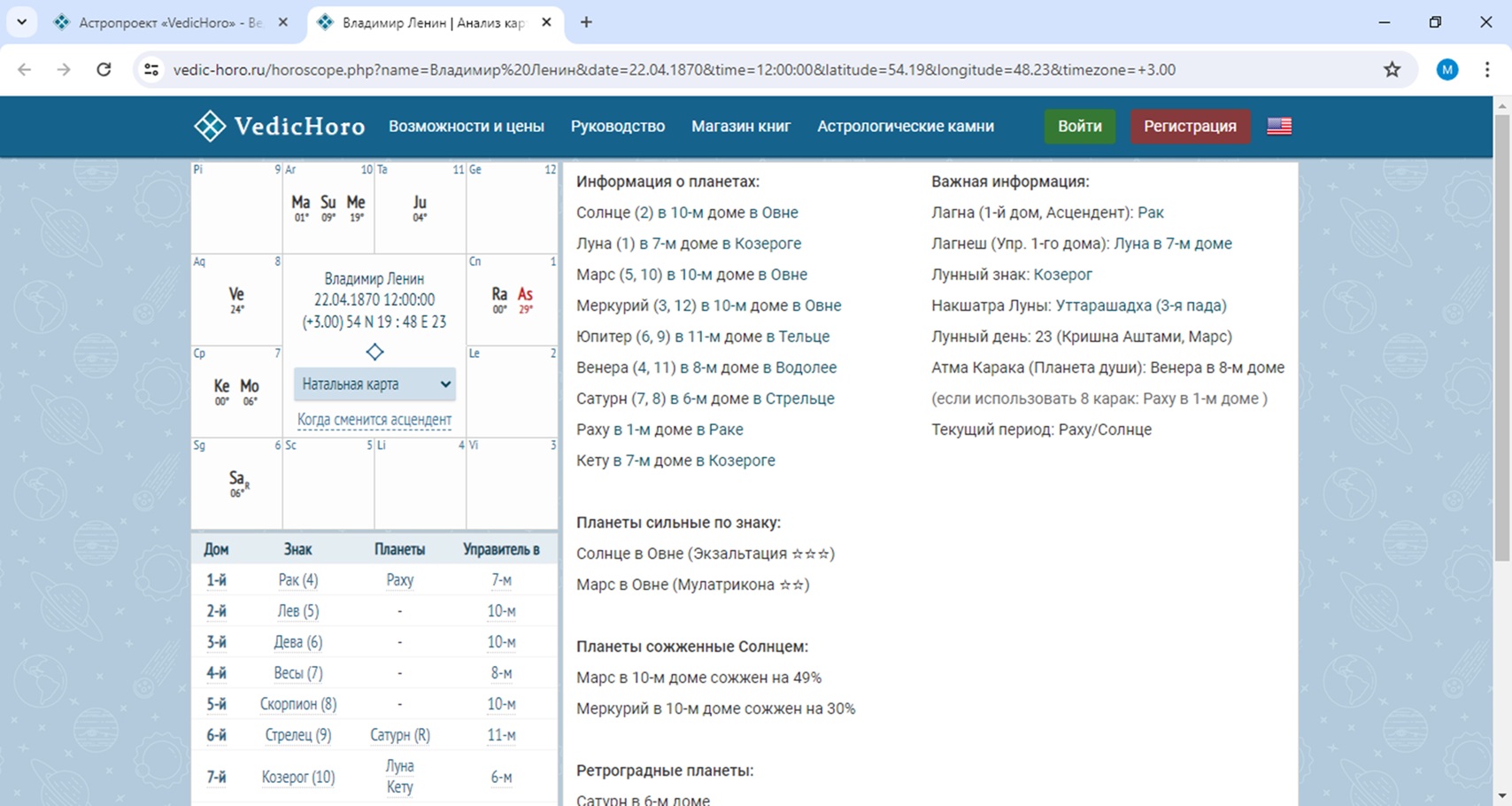 Вот теперь всё готово! Перед нами натальная карта «вождя пролетариата»
