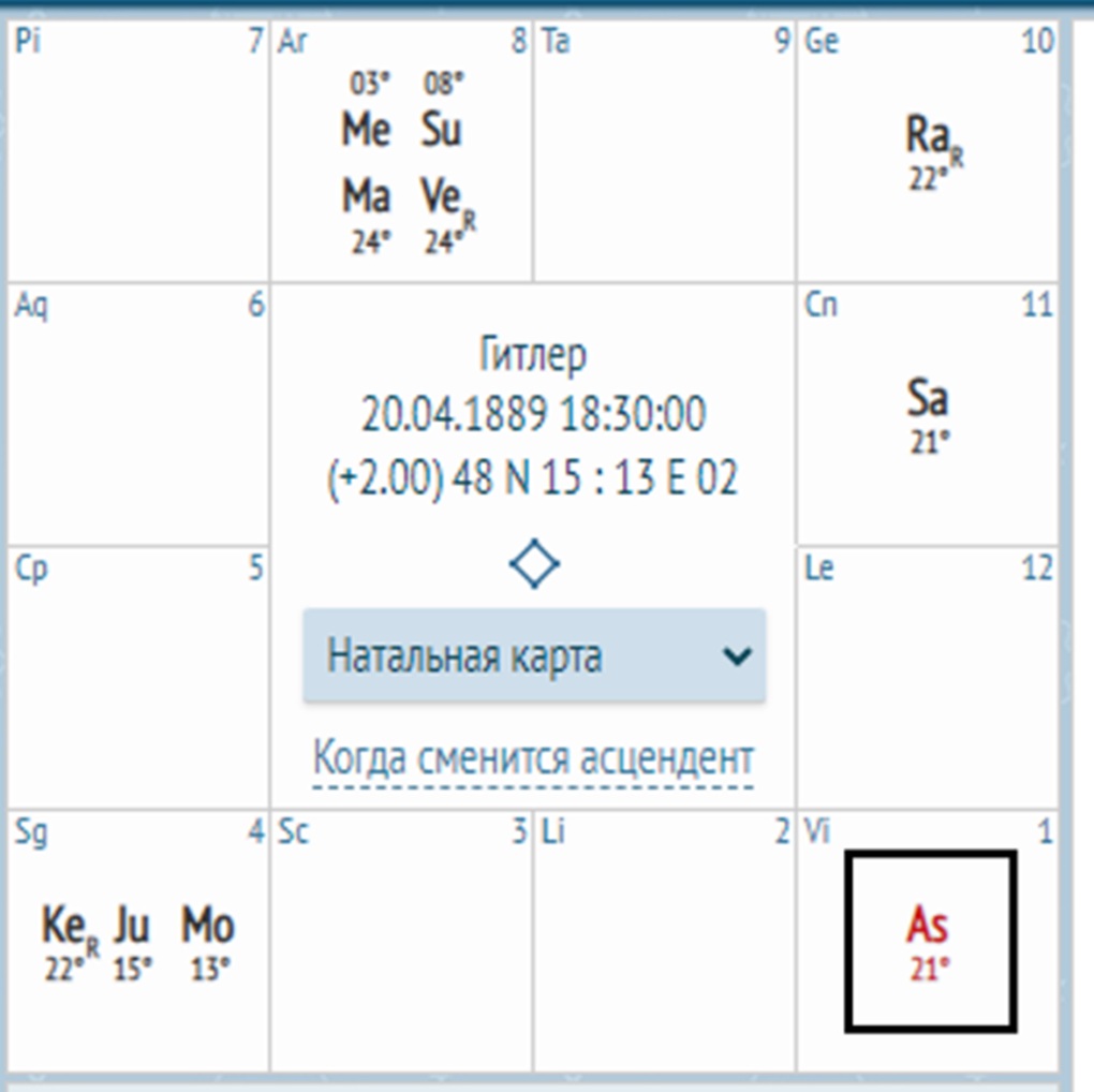 Адольф Гитлер: 20.04.1889; 18.30.00; +2.00; Браунау, Австрия