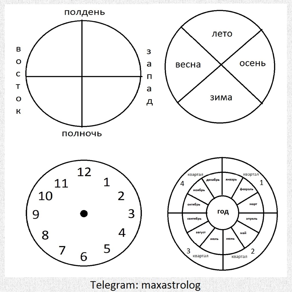 Древние люди, наблюдая за движением Солнца, поделили сектора на небе по временам года и месяцам; а позже по восходу, закату, полудню, полуночи и по часам.