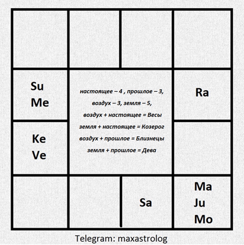 таким образом, в расчёт мы берём крест настоящего и прошлого, а также стихии воздуха и земли, в синтезе получаем: