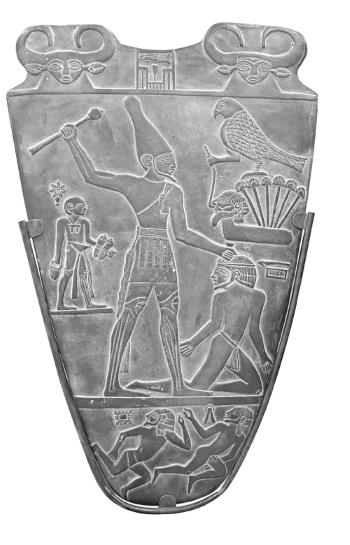 Палетка Нармера – пластина культового назначения, которая использовалась для ритуального растирания красок. Датируется концом IV тыс. до н. э. На обеих сторонах палетки имеются рельефные изображения фараона Нармера. Палетка Нармера исполнена в виде победной стелы и повествует о триумфальной победе Верхнего Египта над Нижним. Это подарок царя Первой, или Нулевой, династии Иераконпольскому храму, который увековечивал его победу над мятежными ливийскими номами в Западной дельте Нила