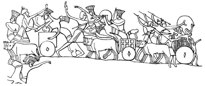Сцена битвы между сардами и египтянами, с одной стороны, и пеласгами и тевкрами – с другой. Рисунок из книги «Вселенная и человечество», 1910 г.