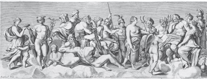 Собрание богов на Олимпе. Гравюра Франсуа Ланглуа по рисунку Рафаэля, 1599–1647 гг.