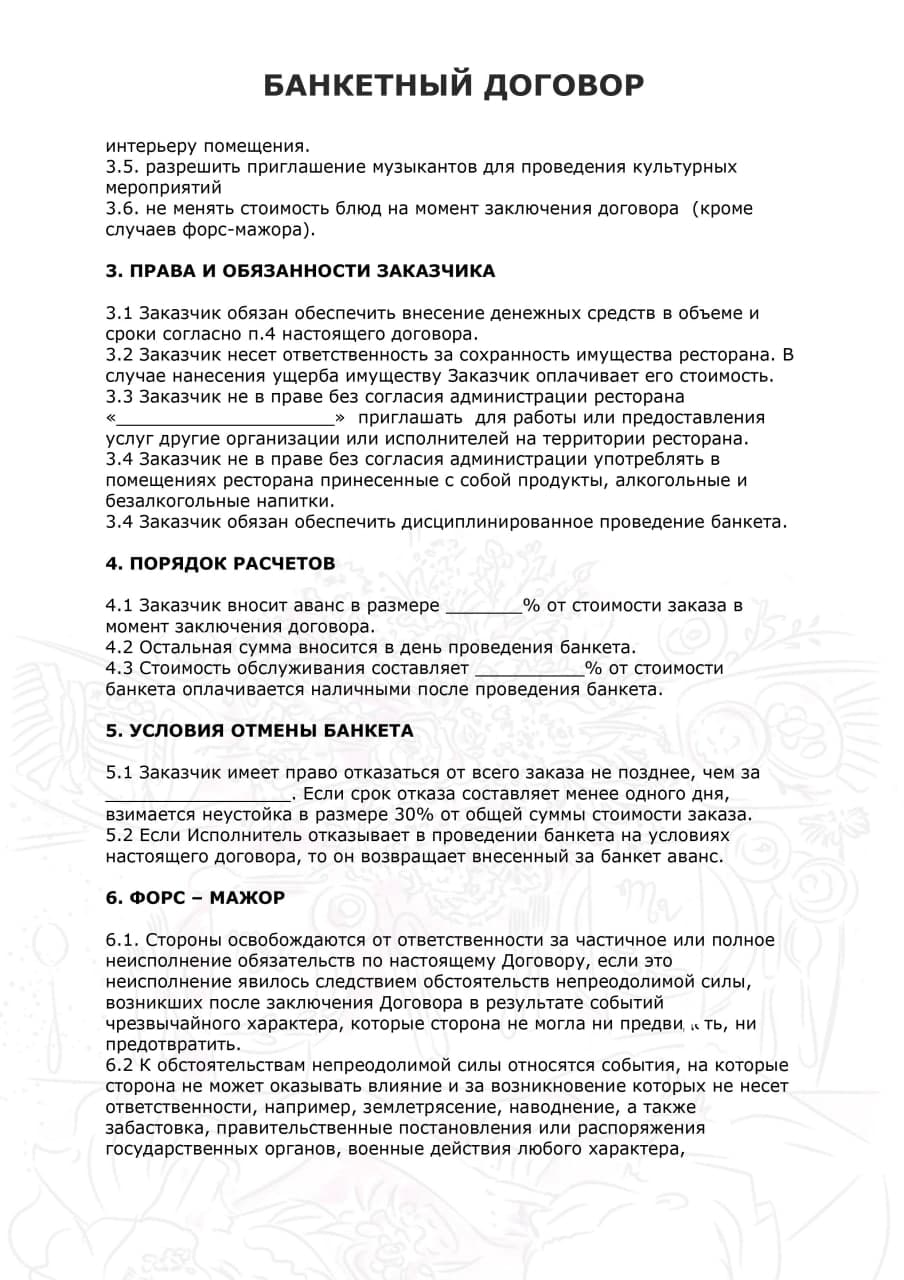 – шаблон банкетного договора;