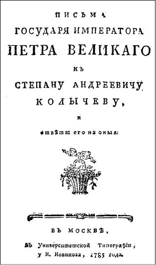 Переписка императора Петра I и Степана Андреевича Колычева, изданная в XVIII в.