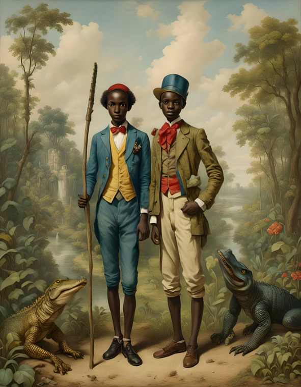 Джо с недоверием посмотрел на сестру и хмыкнул, глядя на картинку. Его внимание привлекли два крокодила, что с голодным вожделением присматривались к двум нарядно одетым подросткам.