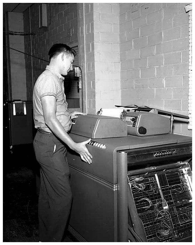 Для учебы на программиста время было что надо – индустрия зарождалась практически у меня на глазах. Авторы курсов хотели продемонстрировать учащимся всю эволюцию компьютерной техники – сначала у нас были теоретические занятия на темы вроде двоичного исчисления, потом нас попросили запрограммировать один из самых ранних компьютеров, IBM 407 Accounting Machine. Программировали его напрямую – вставляя провода в отверстия на печатной плате![5]
