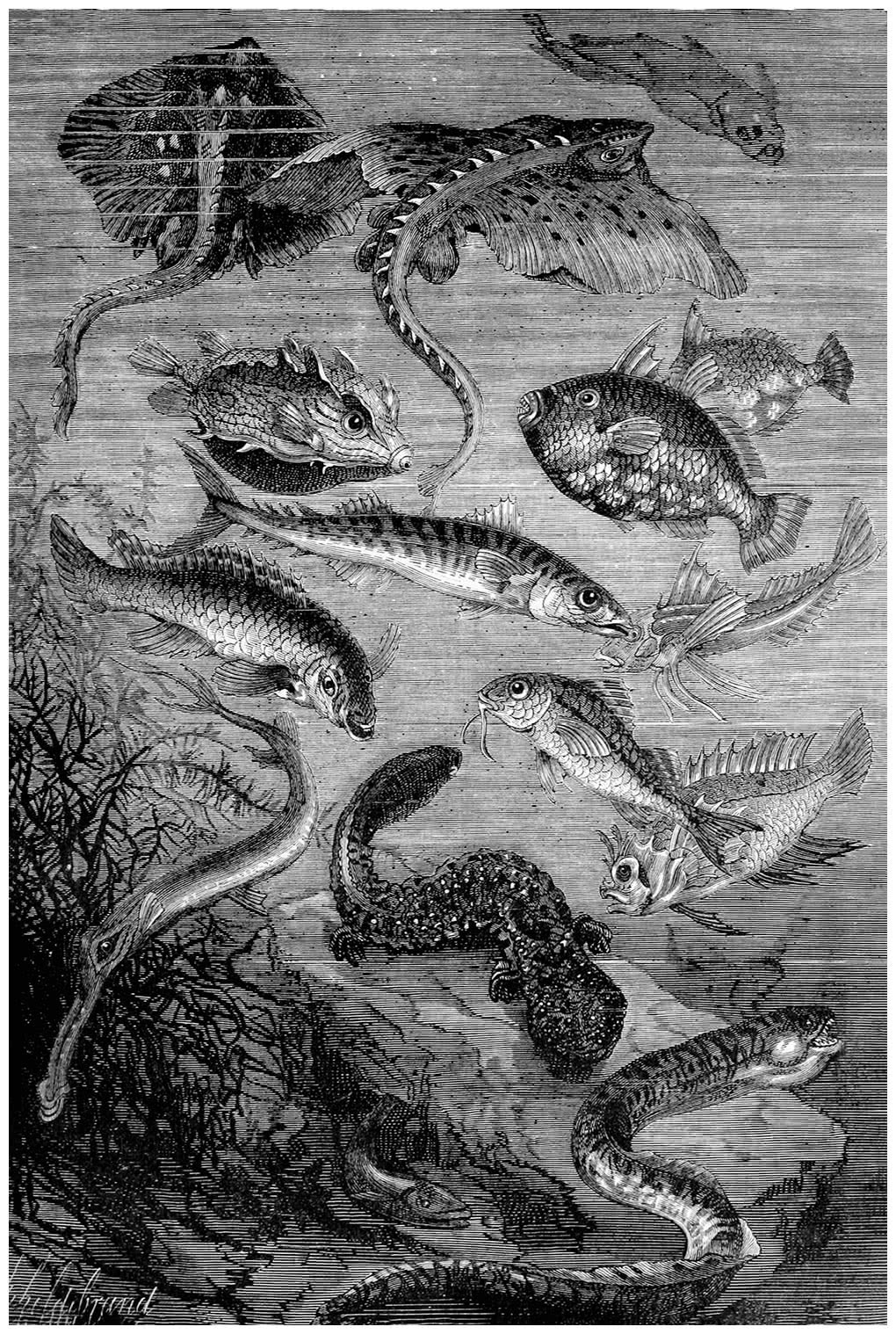 Я не стану перечислять все разновидности морских обитателей, промелькнувших перед нашим потрясенным взором, всю пеструю коллекцию Японского и Китайского морей. Рыб здесь было больше, чем птиц на небе; они стекались отовсюду целыми стаями – очевидно, привлеченные яркими лучами электрического маяка.
