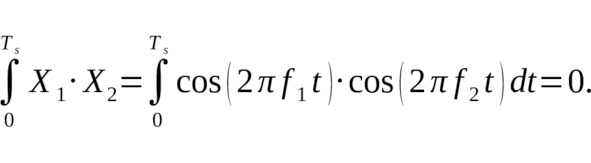 Технология OFDM отличается применением прямого и обратного быстрых преобразований Фурье (соответственно, БПФ и ОБПФ) в качестве базовых операций. После операции БПФ сигналы на поднесущих частотах, рассматриваемые уже во временной области, ортогональны между собой. Это условие ортогональности сигналов X0, X1…Xn+п+z на поднесущих частотах f0, f1…fn+п+z с учетом длительности OFDM-символа Ts можно представить в следующем уравнении [139]: