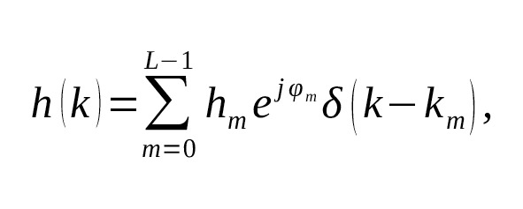 где hm – передаточные коэффициенты лучей многолучевого сигнала, φm – их фазы, km – задержки лучей в выборках, δ (n- km) – функция Кронекера, m – номер луча, L – суммарное число лучей. В случае домашней связи, например, по сети WiFi, в первом приближении функцию hm можно описать распределением Рэлея, а φm – равновероятным распределением. Стоит отметить, что в случае, когда нет прямого луча, формулой Рэлея описывается именно огибающая радиосигнала, то есть изменение коэффициента передачи суммы всех лучей описано по данному закону [54].