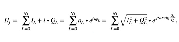 где L – номер луча, Nl – номер последнего луча, IL + i. QL – комплексное число передаточной функции на конкретной частоте, модуль которого является амплитудой луча aL, зависящей от коэффициентов фокусировки, отражения от дна и отражения от поверхности. А аргумент этого числа – фаза луча φL. Необходимо рассчитывать структуру поля для нескольких частотных значений Hf1, Hf2, … Hfn, чтобы получить передаточную функцию H. Операция ОБПФ от этой функции даст импульсную характеристику устройства h, описываемую формулой (1.3).