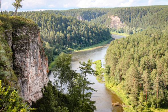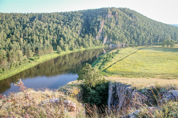 «На четвертый день после Лаклов Ай раскинул передо мной красоты Уфимского плато. Трудно себе представить, что эти поросшие дремучим лесом возвышенности, метров по 200—300 высотой, – не что иное, как отложения древнего моря. Здесь на осыпях можно как бы прогуляться по его дну, лет эдак 400 миллионов назад и пособирать окаменевшие ракушки и кораллы эпохи девона. Стоит лишь опасаться рифов, представляющих реальную опасность: на перекатах, особенно бурных напоследок, надо быть осторожней – зубья древних рифов еще не затупились. Уфимское плато – это уже совсем другой мир, другой ландшафт и растительность. Лес в основном хвойный: ель, сосна – и от густого запаха хвои можно просто одуреть. Лесной аромат, кажется, убивает даже комаров».