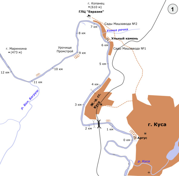 «Славилась издавна Куса и ее окрестности своей красотой. Лет восемьдесят-девяносто назад кто-то из заезжих журналистов назвал их ″Русской Швейцарией″… Побывайте-ка, например, на Аргусе. Это большой каменный утес на реке Ай, недалеко от города. Взберитесь на него, и у вас дух захватит от восторга перед чудесной панорамой горного Урала.