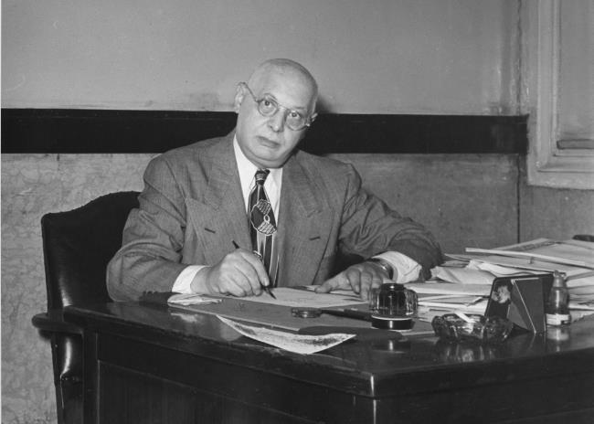 Илл. 2. Дэвид Зон, редактор Bialystoker Stimme, за рабочим столом в Белостокском центре, около 1955 года. Печатается с разрешения Уильяма и Стивена Каве и Роны К. Мойер