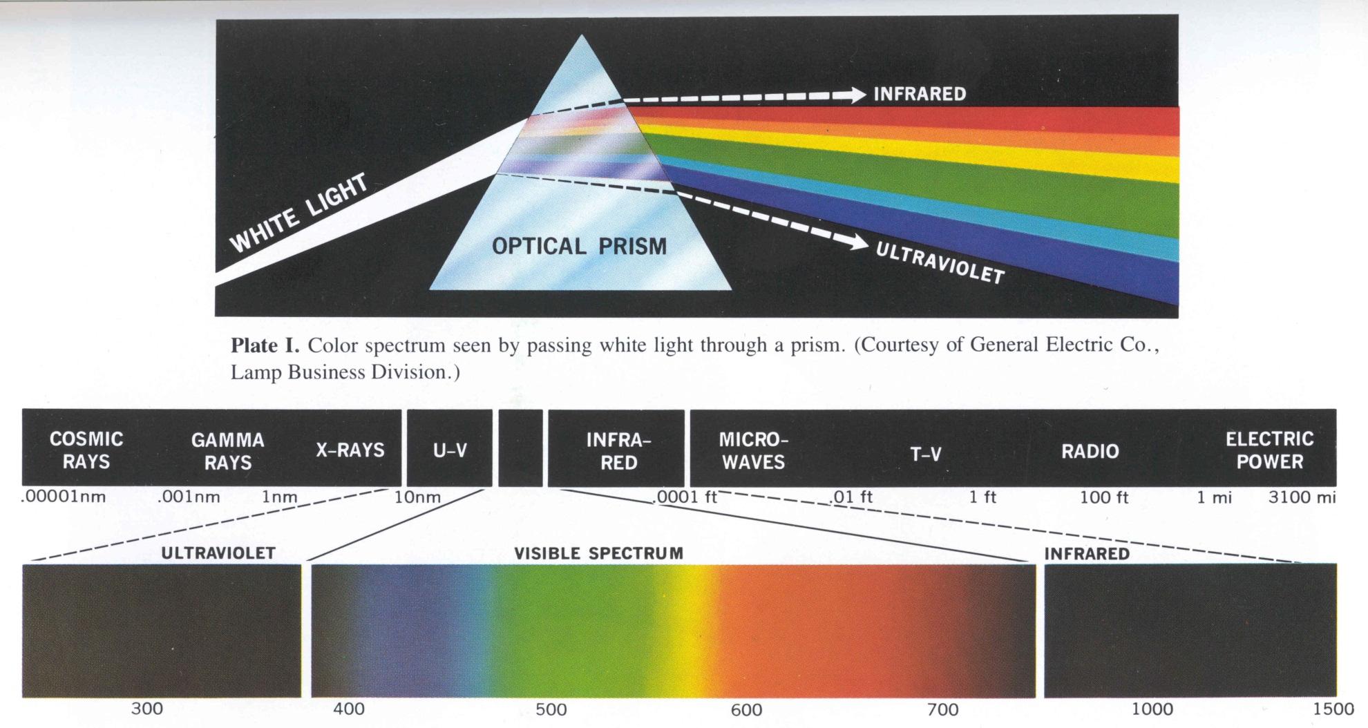Табличка I. Цветовой спектр, видимый при прохождении белого света через призму. (С разрешения General Electric Co., подразделения по производству ламп.) / Plate I. Color spectrum seen by passing white light a prism. (Courtesy of General Electric Co., Lamp Business Division.)