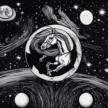 Рис. 3. Сферический конь в вакууме. Нейросети Retomagic и Кандинский