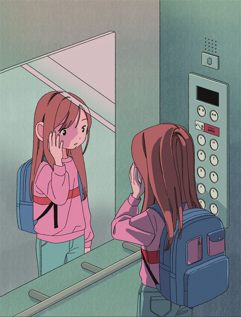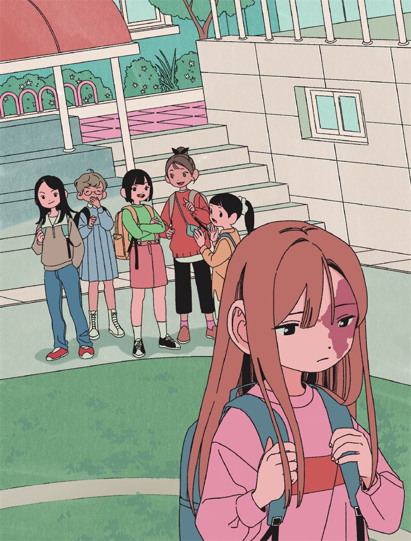 После уроков Мичжон шла прямо домой. Кожа на шее и руках у неё была нормального цвета, но половину лица занимали багровые пятна. Мичжон носила медицинскую маску и шапочку, однако даже так не могла защититься от косых взглядов.