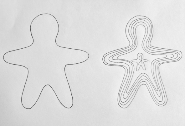 Далее нарисуй внутри человечка (по контуру первого) еще одного.