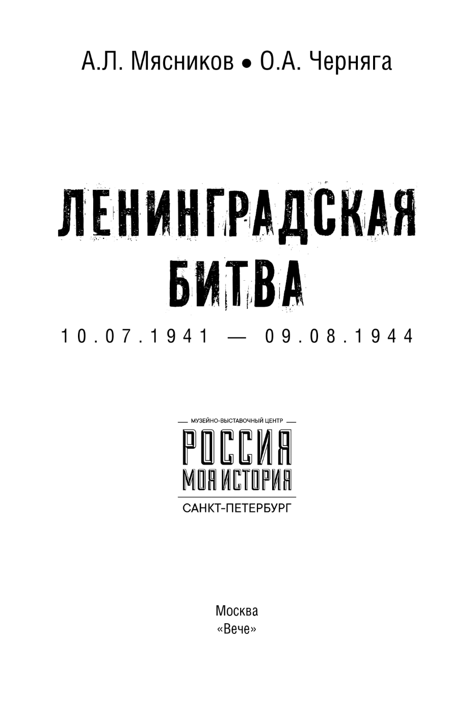 Но началось сражение за Ленинград несколько раньше и завершилось позднее. Совокупность всех этих боевых действий и называют Ленинградской битвой. О событиях этой битвы, к сожалению, не по праву забытой, оказавшейся как бы в тени великих сражений, и рассказывает книга Александра Мясникова и Олега Черняги «Ленинградская битва: 10.07.1941—09.08.1944 гг». Основанная исключительно на документах, в том числе и ранее неизвестных, книга позволяет по-новому взглянуть на многие события той поры.