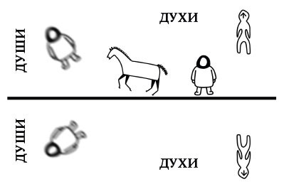 Рассмотрим более простую картину мира, например у адептов анимизма[4]. Несмотря на то что практически не бывает анимизма в чистом виде, все же можно представить некую усредненную картину мира, исходя из того, что мы знаем об анимизме и тех комплексах верований, которые на нем основаны или с ним связаны.