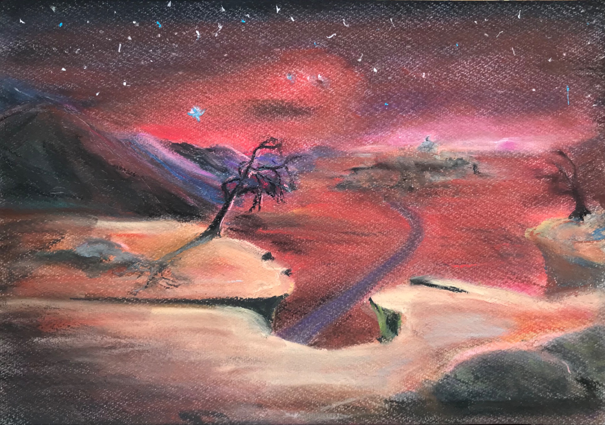Синеют звёзды голубые,И ярким пламенем горят,Вершины елей золотые —Их кроет пламенный закат.Не жди сегодня звуков грома —Нет грозной тучи наверху.Скорее! Выйди, друг, из домаИ брось взгляд томный на луну.Вспорхни же ввысь ночною птицей,Как опьянённый козодой!Настало время веселиться,Пусть горе сгинет за горой!Кладёт рассвет на землю краски —Багрянец, золото, охру,Туман спустился словно в сказке,И всё вокруг – огонь в дыму!Но новый день ты встретишь в келье,Где служит стенами сосна,И солнца луч, пробивши щели,Прогонит вон осколки сна.Ты, встав, направишь взгляд свой в небо,Но вновь охватит дух тоска.Какая благостная нега!И всё же – наша ночь близка!..16 ноября 2022Бег