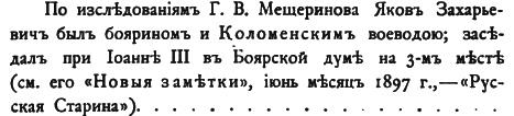 «…От Якова пошёл род бояр Яковлевых, от его младшего брата Юрия – бояр Юрьевых. Поборник московского благочестия Михаил Юрьев был ближним боярином Василия III.