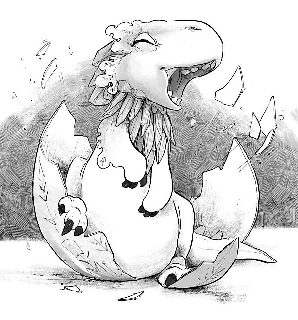 – Как вовремя ты вылупился! Счастливого Рождества! – Динозаврик улыбнулся и высунул язык. После того, как он провел миллионы лет в замерзшем яйце, ему повезло родиться в таком волшебном месте!