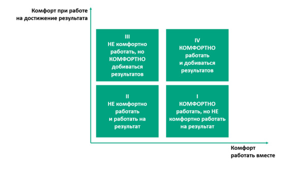 Квадрат III. Один из лучших управленцев, которого я знал, был из этого квадрата. Я лишь однажды видел, как его в гневе. Он сорвался и даже швырнул стул в своих сотрудников. Но все знали, что он поступил так только по одной причине. Он всей своей управленческой душой переживал за результат и делал все, чтобы его армия одержала победу в войне с конкурентами. Да, с ним было не очень комфортно работать. Его требовательность и строгость не давали покоя ни сотрудникам, ни ему самому. Но все это забывалось, как только они чувствовали вкус победы на губах и понимали, что все лишения и невзгоды были нужны для ее достижения.