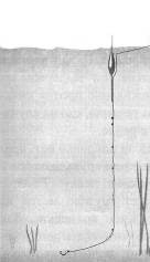 Рис. 8. Оснастка лещовой удочки и положение насадки на дне.