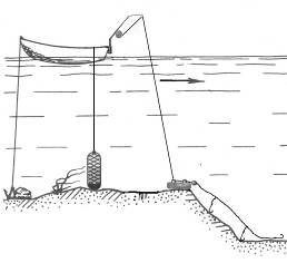 Ловля производится непременно с прикормкой, размещаемой, в отличие от береговой поплавочной ловли, в кормушке, расположенной на дне под лодкой. Насаженные крючки, естественно, располагаются в струе, вымывающей пищу из кормушки.