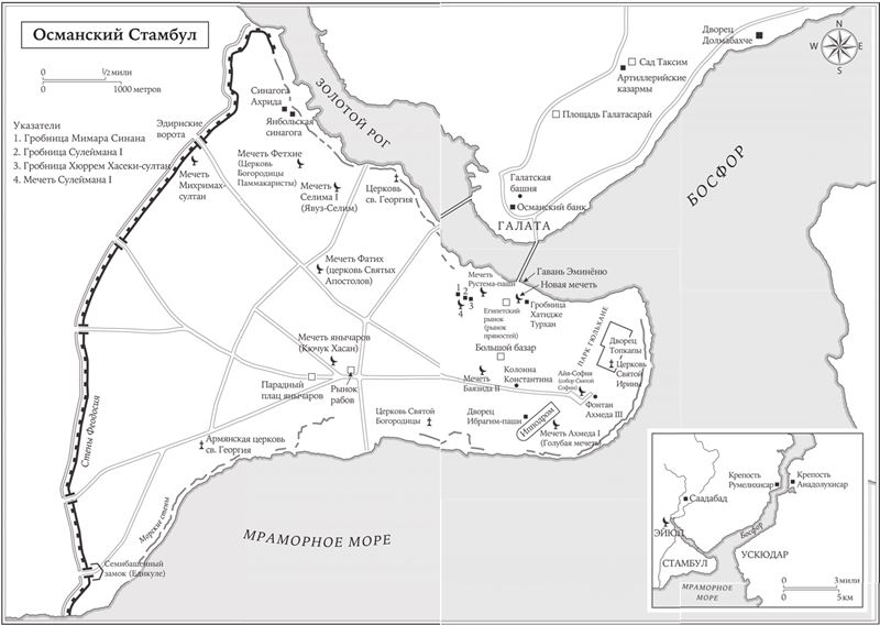 Стамбул или Константинополь? Несмотря на то что название «Константинополь» использовалось самими османами, византийский город принято называть «Константинополь» только до османского завоевания в 1453 году, а название «Стамбул», происходящее от греческого «στην πόλη» («стин поли» – т. е. «к городу») вошло в оборот после падения империи и рождения Турецкой Республики в 1923 году. Эта книга следует данному правилу.