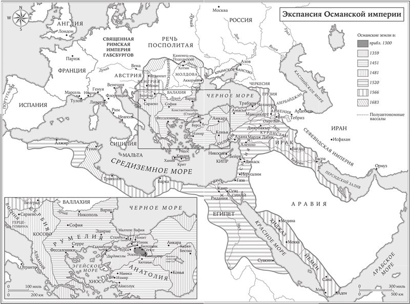 Поскольку османы применяли термин «Анатолия» для обозначения Юго-Западной Азии и Малой Азии, именно его вы увидите в тексте. Аналогичным образом, регион, который часто называют Балканами, османы именовали «Румели» («земля римлян») или «Рум». Приблизительный английский перевод – Юго-Восточная Европа, именно его выбрали авторы книги.